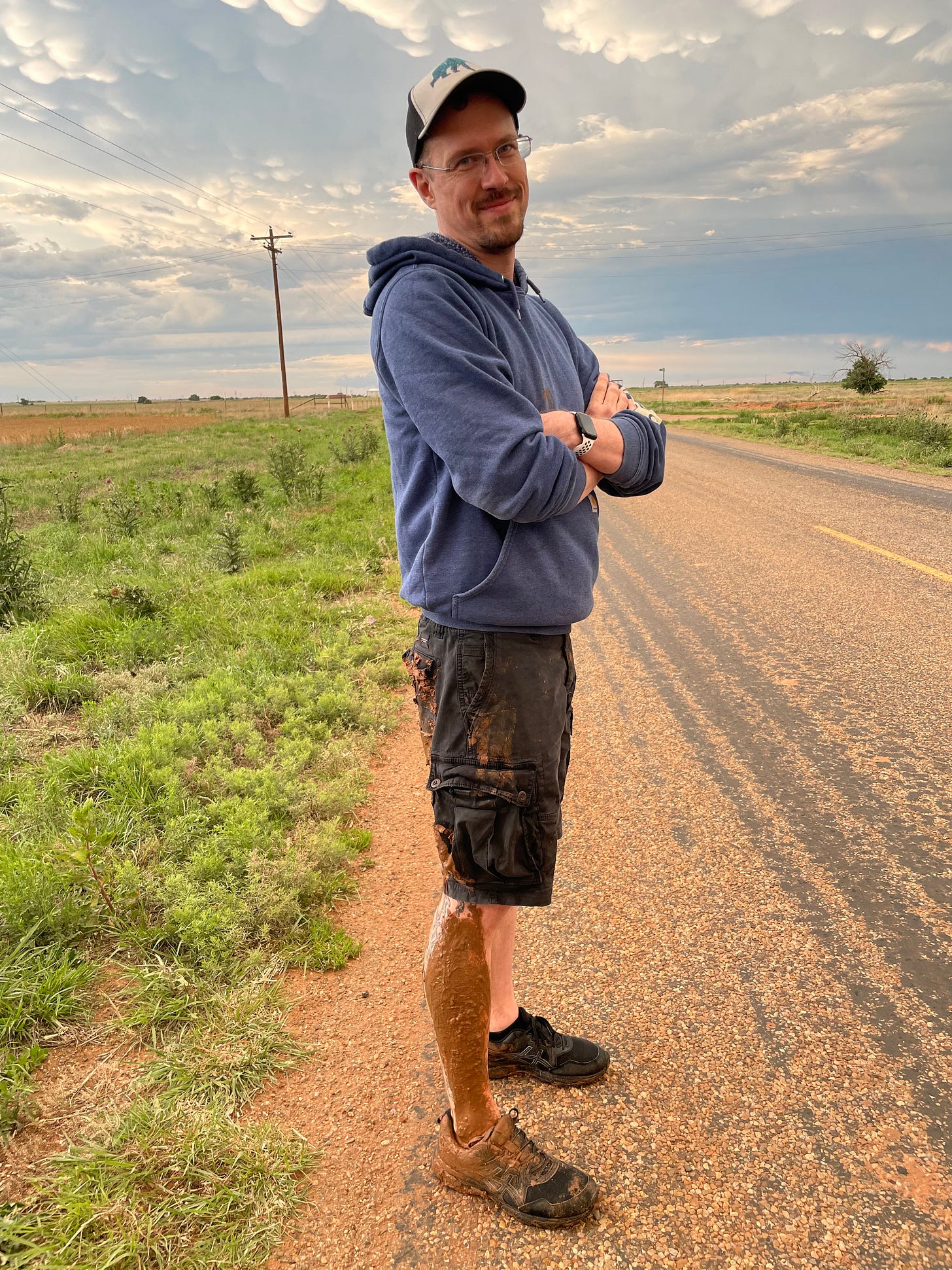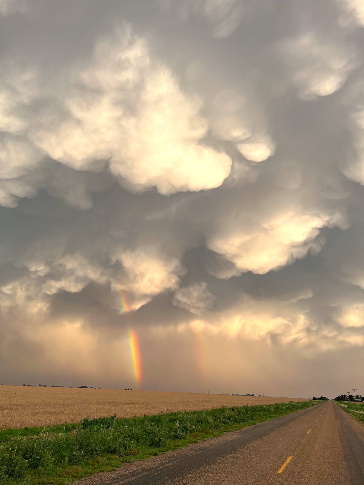We’d been on the road all day. Impressive storms? Not so much. Incredible double rainbow and mammatus clouds? Yes and yes. Bathrooms breaks? Not really.